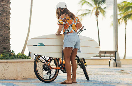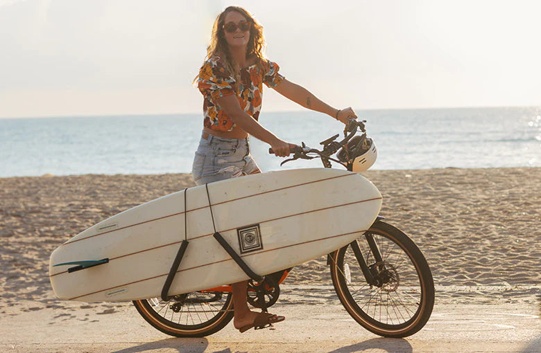 Designed to be easily removed and reattached for bike use without a surfboard